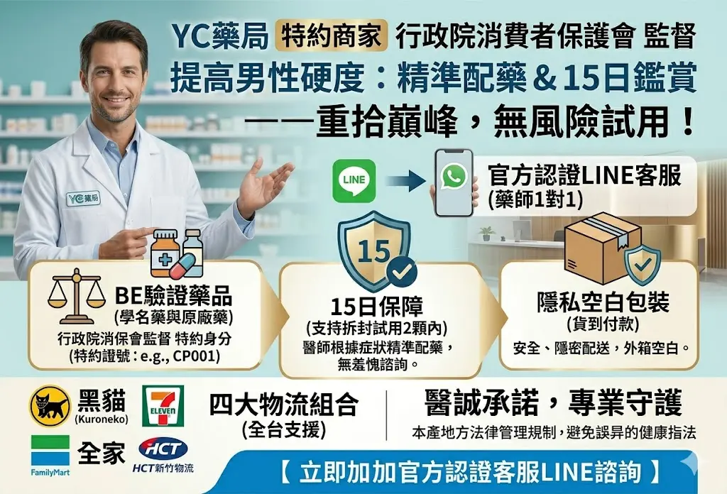 硬度問題不應是壓在心頭的重擔,而是您可以掌控的生理參數。在 YC 藥局,我們不只是售賣藥品,我們是在傳遞一種專業、科學且具備尊嚴的健康生活方式。